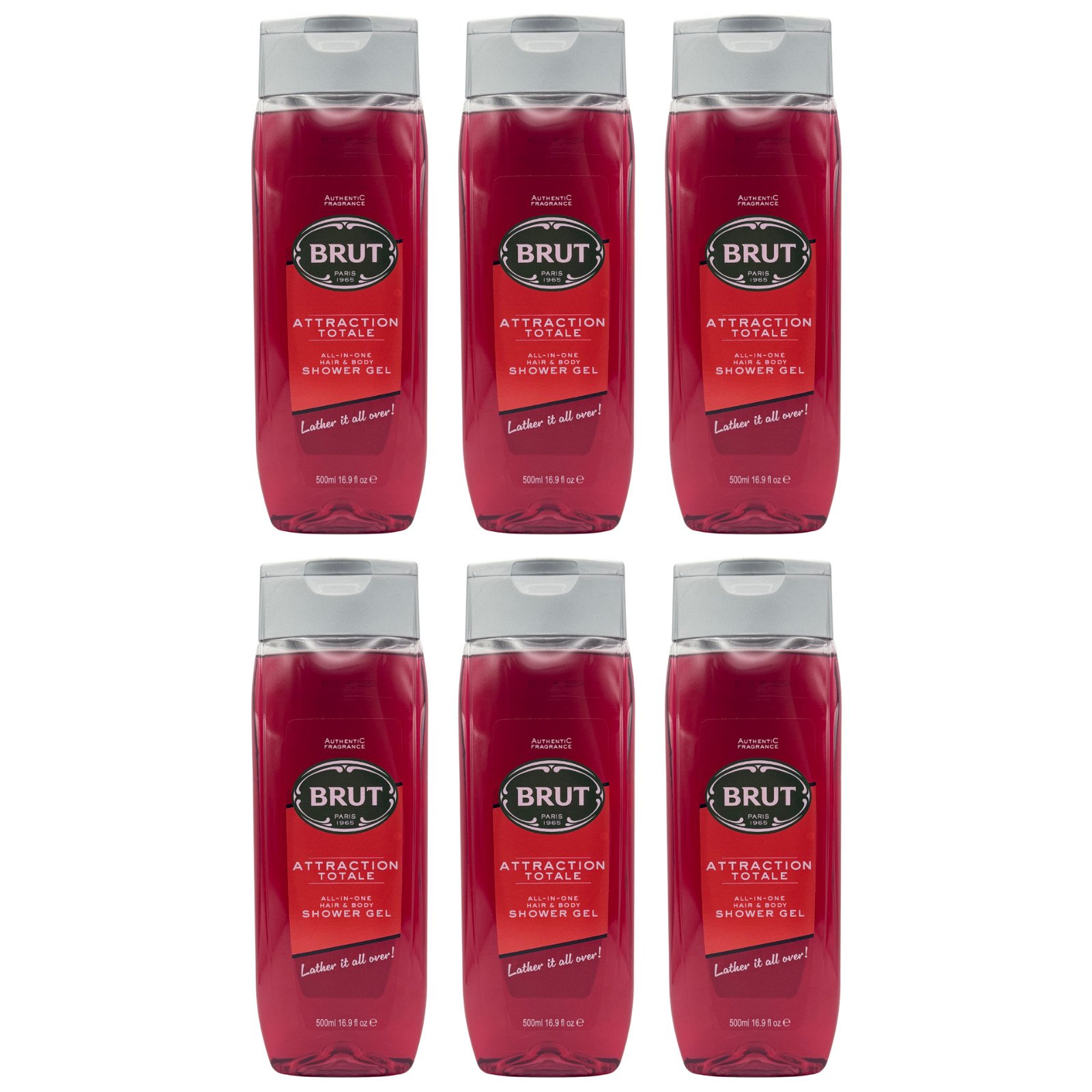Brut Attraction Totale All-In-One Hair & Body Shower Gel 500ml - 6 Pack