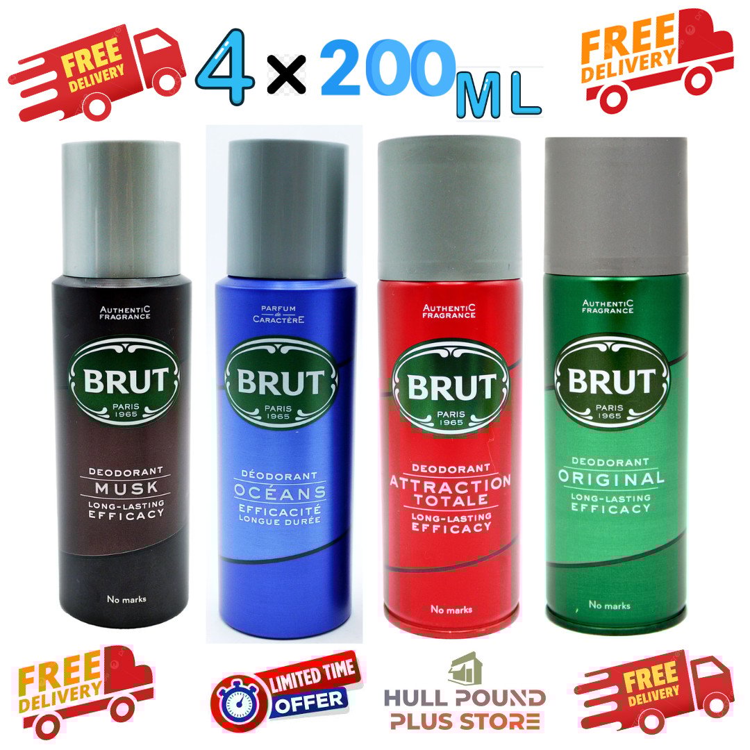 4 or 6 x 200ml Brut Deodorant Body Spray Musk Oceans Original Attraction Totale
