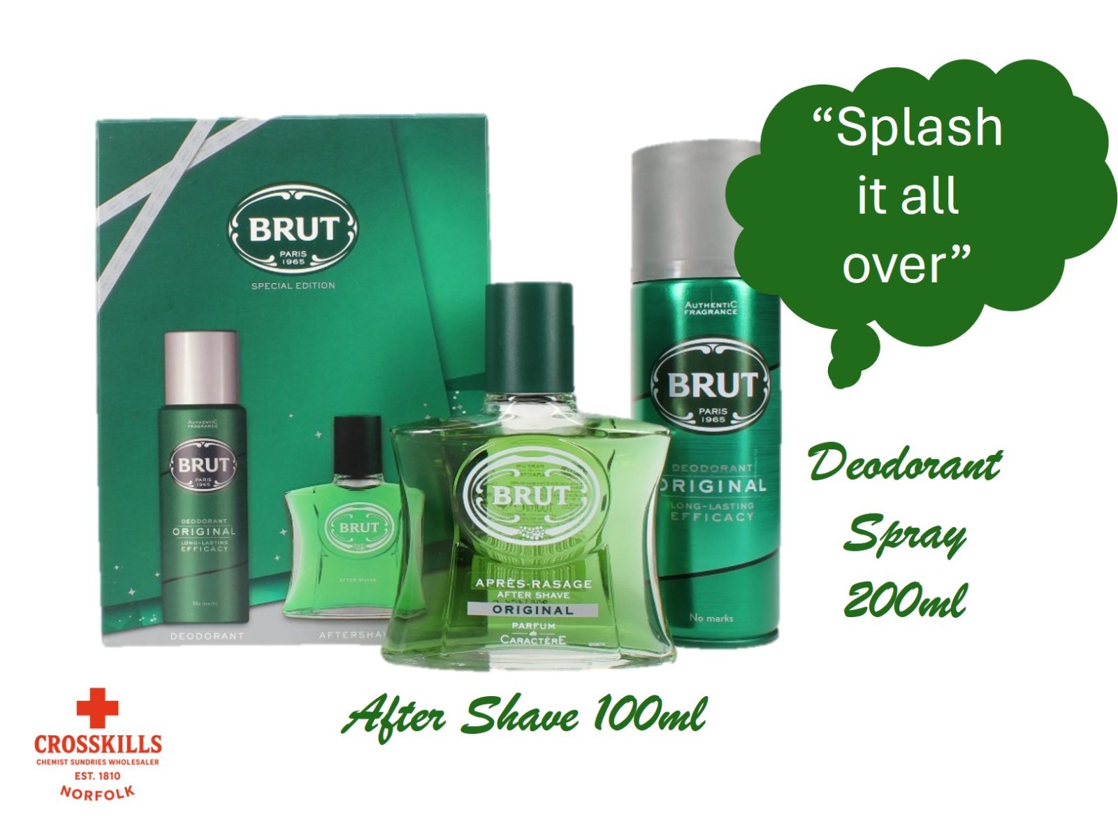 Brut Aftershave Gift Set 100ml Splash & 200ml Deodorant Spray | Free P&P