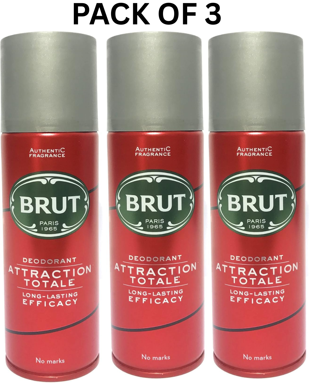 3 Pack Brut Attraction Totale Long Lasting Deodorant Spray for Men, 200ml Each
