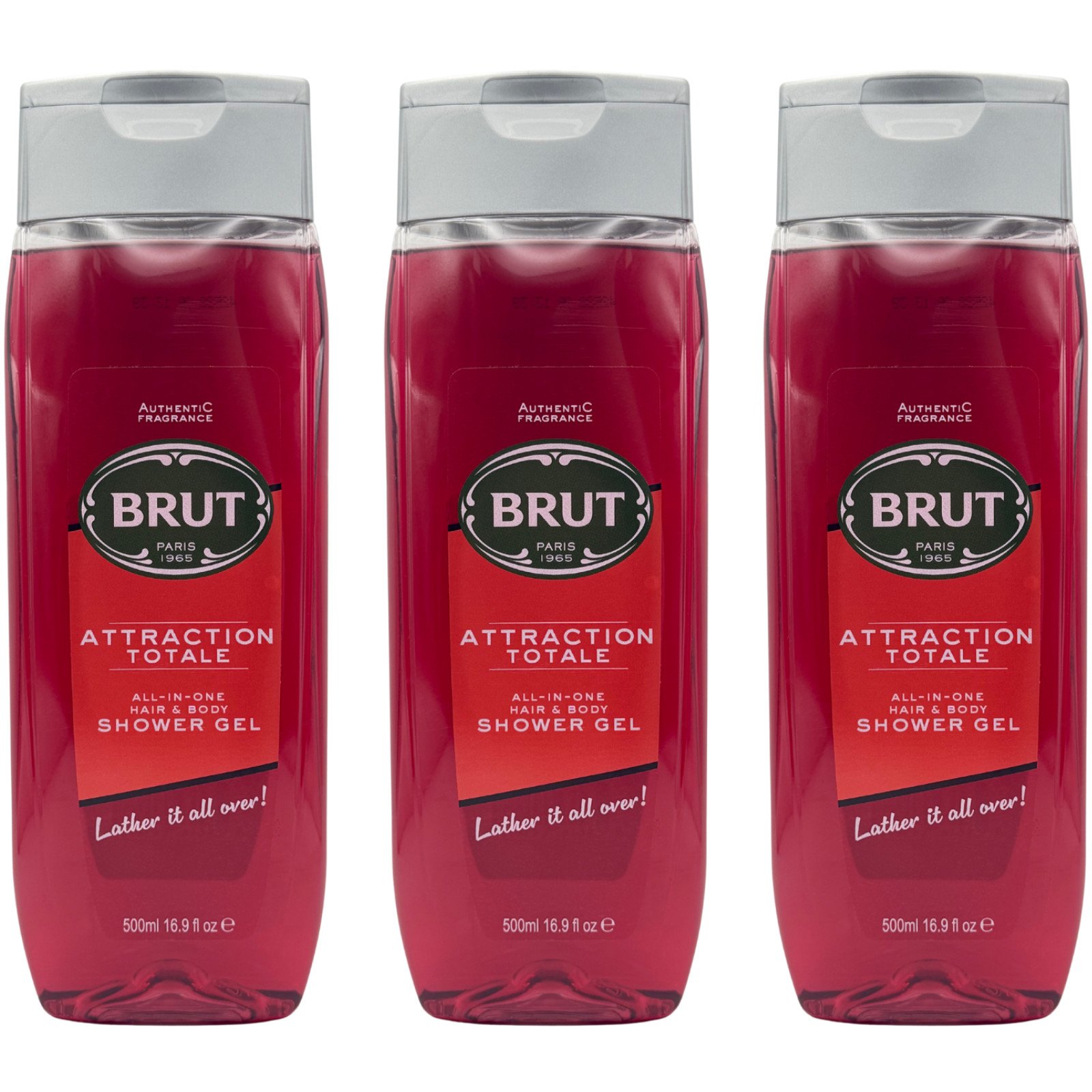 Brut Attraction Totale All-In-One Hair & Body Shower Gel 500ml - 3 Pack
