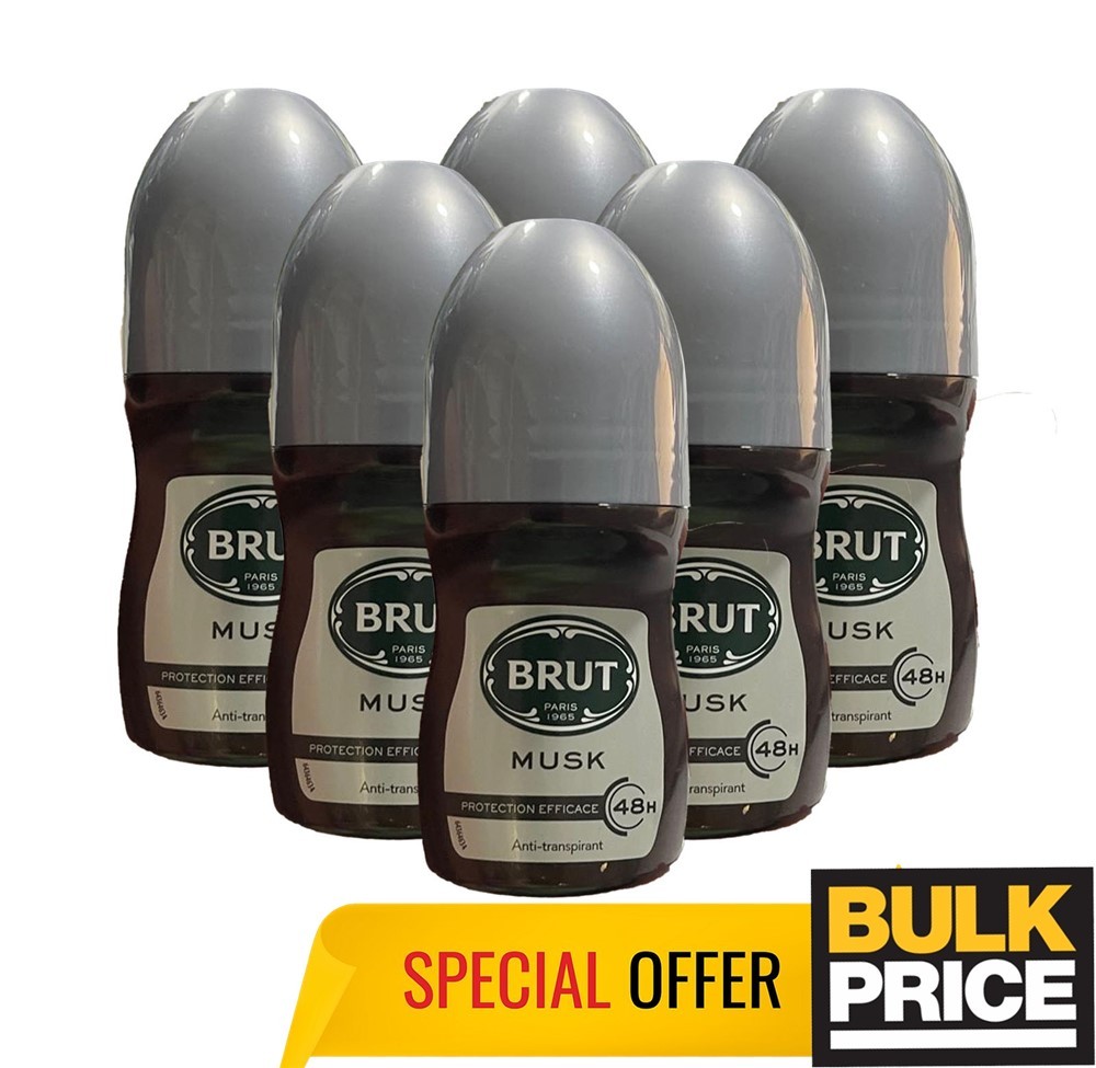 Brut Musk Roll-on Deodorant 48H Sweat Odor Protection Long-Lasting Bulk 6-Pack