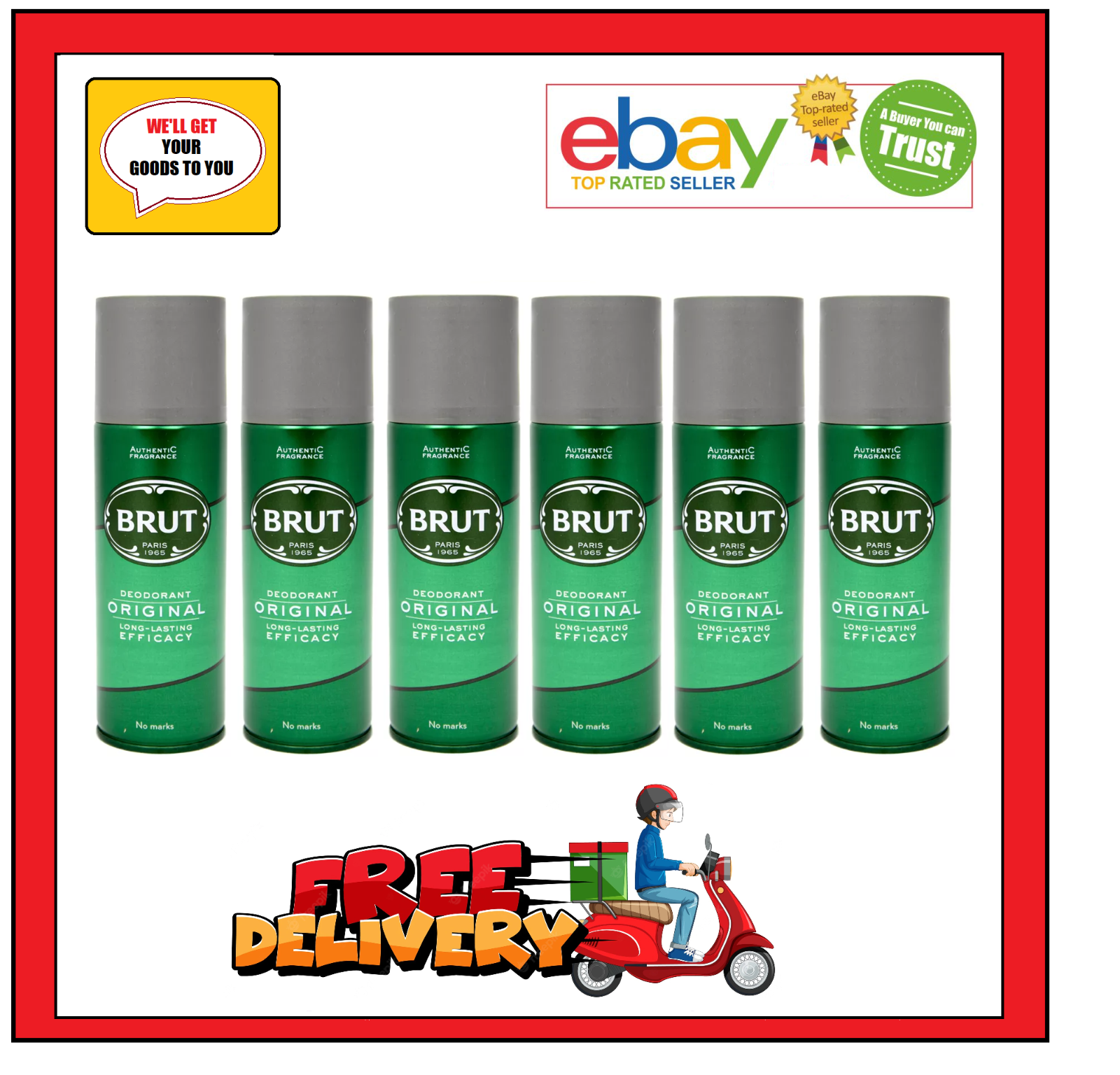 6 X Brut Deodorant Anti-Perspirant Mans Original 200ml