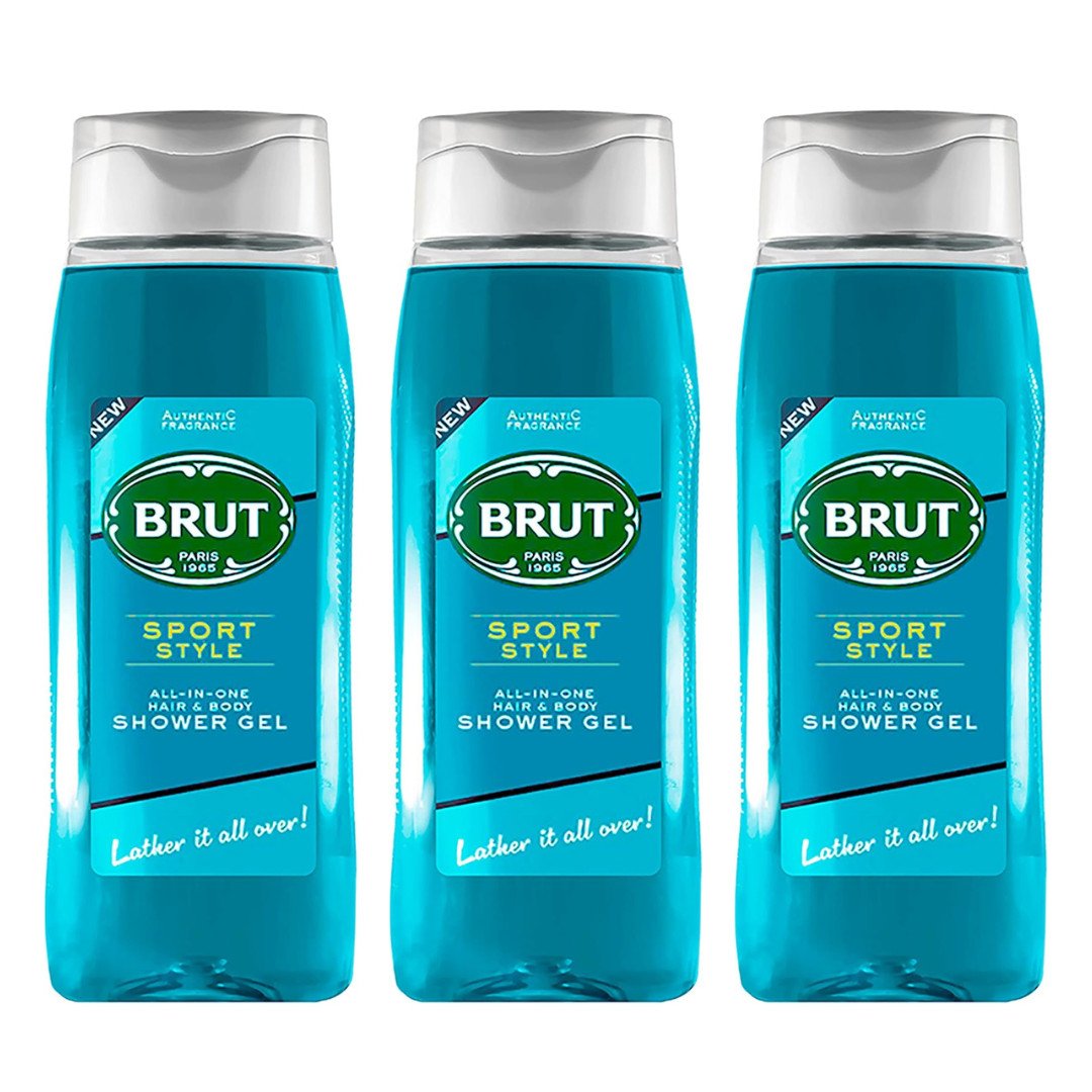 3x Brut Sport Style Hair & Body Shower Gel 500ml