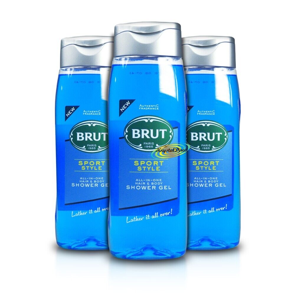 BRUT SPORT STYLE ALL-IN-ONE HAIR & BODY SHOWER GEL BIG 500ML BOTTLE 3 PACK
