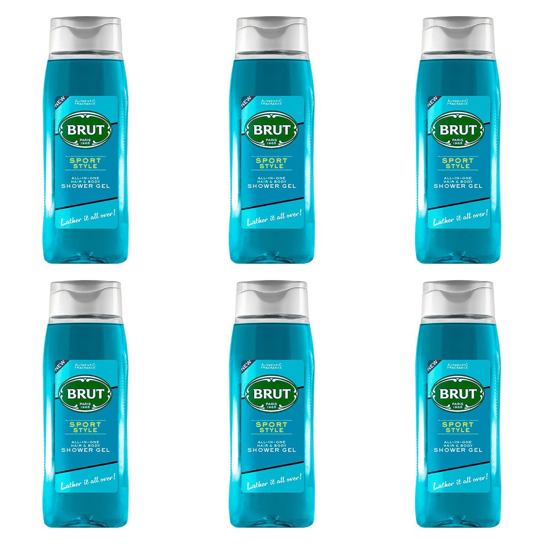 6x Brut Sport Style Hair & Body Shower Gel 500ml