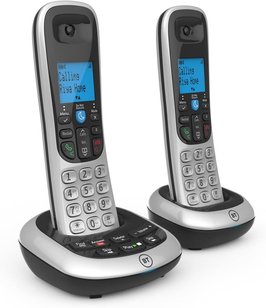 British Telecom BT 4600 Cordless Landline House Phone, Home Big Buttons, Advanced Nuisance Call Blocker, Answer Machine, Twin Handset Pack