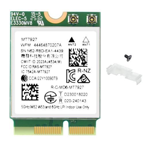WiFi 7 Card MT7927 Tri-Band 802.11be Wireless Adapter, 2.4/5/6GHz, BT 5.4, M.2 Key E for PC Laptop Windows 11, Compatible with Intel & AMD