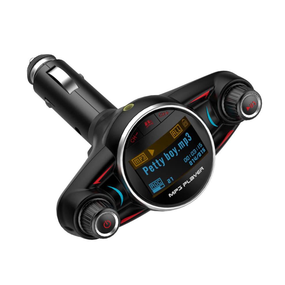 BT08 Big Eyes Double Head FM Vehicle Bluetooth mp3 Double Knobs Large Screen Display Voltage Detection