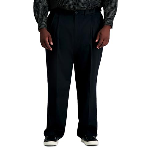 Haggar Men's Premium No Iron Khaki Classic Fit Pleat Front Regular and Big & Tall Sizes, Black BT, 50W x 30L, Black Bt, 50W x 30L