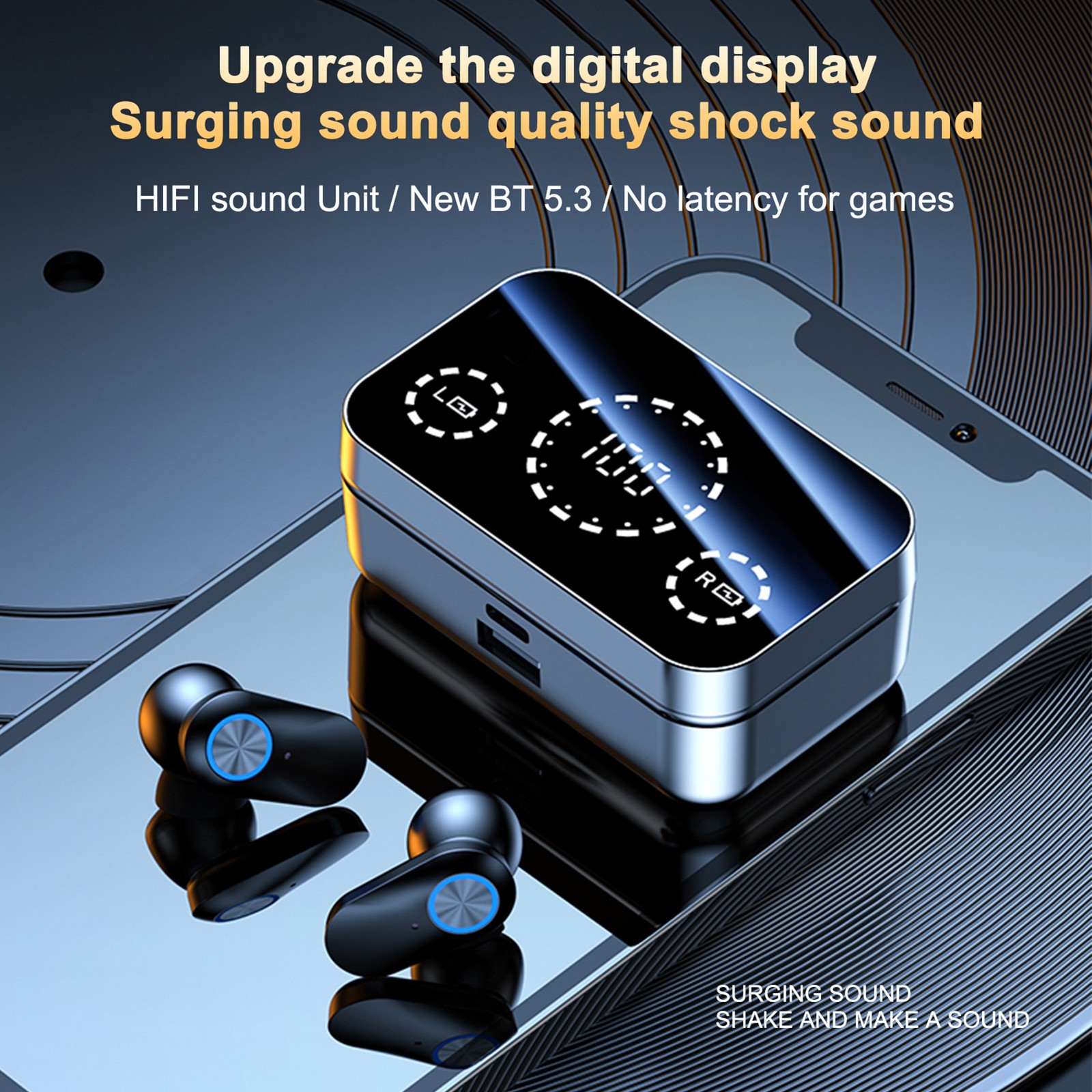 ﹢YD08 Mirror Wireless BT 5.3 Headset Chargeable For Cell Phones HD LED Digital