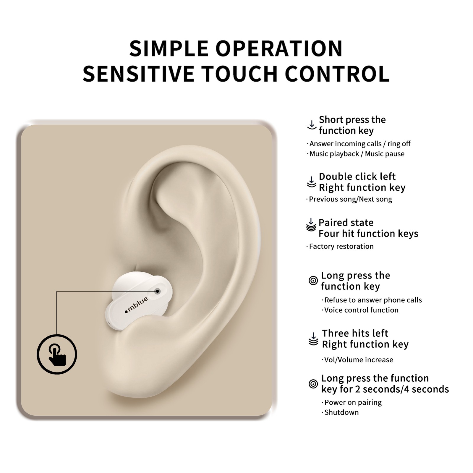 BT Sleep Earbuds BT5.3 Touch Control Earbuds Wireless BT Earphone HEN