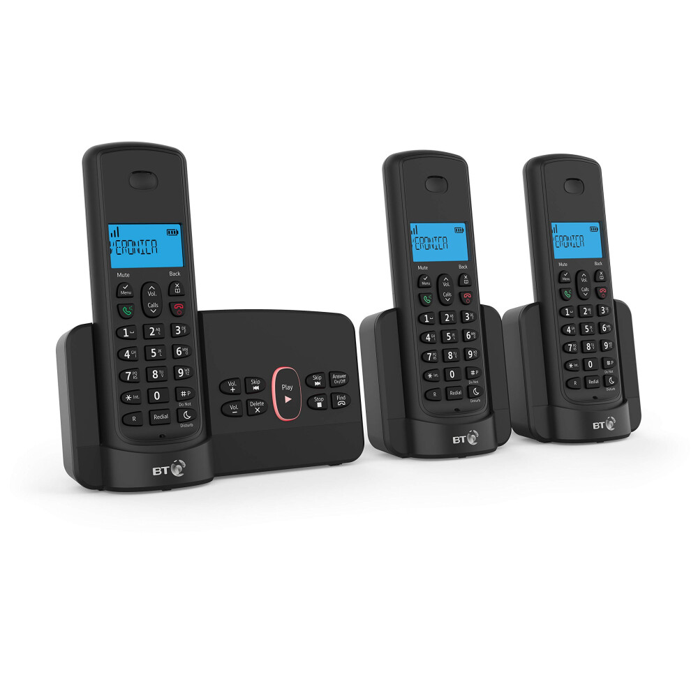 BT Essential Cordless Landline House Phone, Nuisance Call Blocker, Call Block button, Answer Machine, Trio Handset Pack