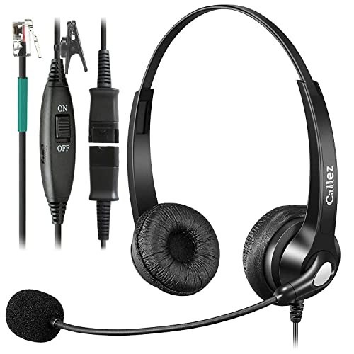 RJ9 Telephone Headset with Mic Noise Cancelling & Quick Disconnect, Landline Phone Headset Compatible with Mitel 5312 5320 Polycom VVX411 VVX410 Avaya ShoreTel NEC BT Converse Paragon Desk IP Phones