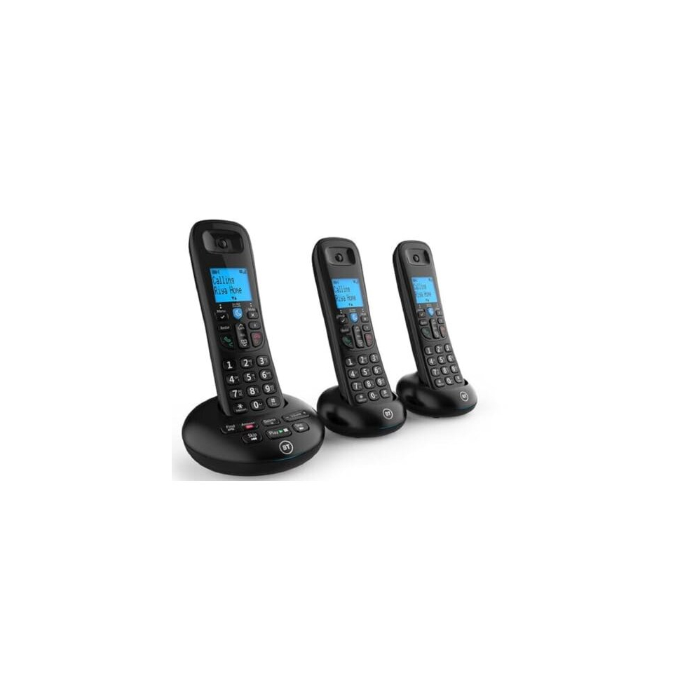 BT Premium Cordless Landline House Phone, Home Phone, 100 Percent Nuisance Call Blocker, Call Block Button, Answer Machine, Trio Handset Pack