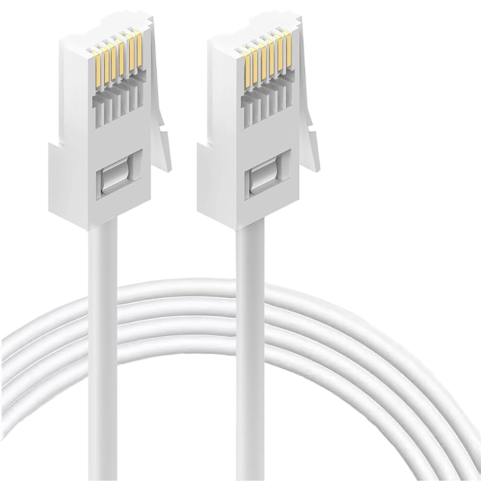 HAWAKA BT Telephone Cable, Male to Male Telephone Wire, BT Socket to Modem, Fax Machine, 6P6C Plug Landline Phones Cable for Home & Office (White, 6P