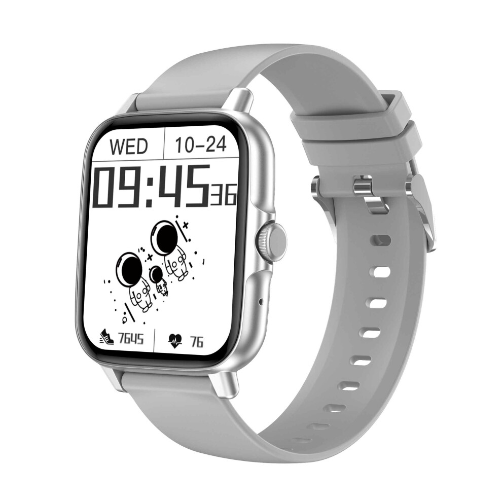 (Grey) 1.69 inch Touch Screen Heart Rate Blood Pressure Oxygen Monitor BT 5.0 IP68 Waterproof Smart Watch