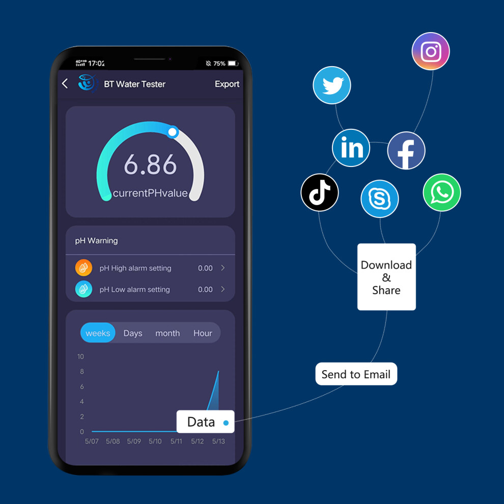 Smart BT 6 in 1 Ph Tester Pool Water PH/ EC/ TDS/ SALT/ S.G/ Temperature Tester Pool Water Quality Monitor Multifunction Water Quality Dete