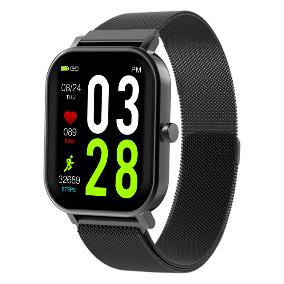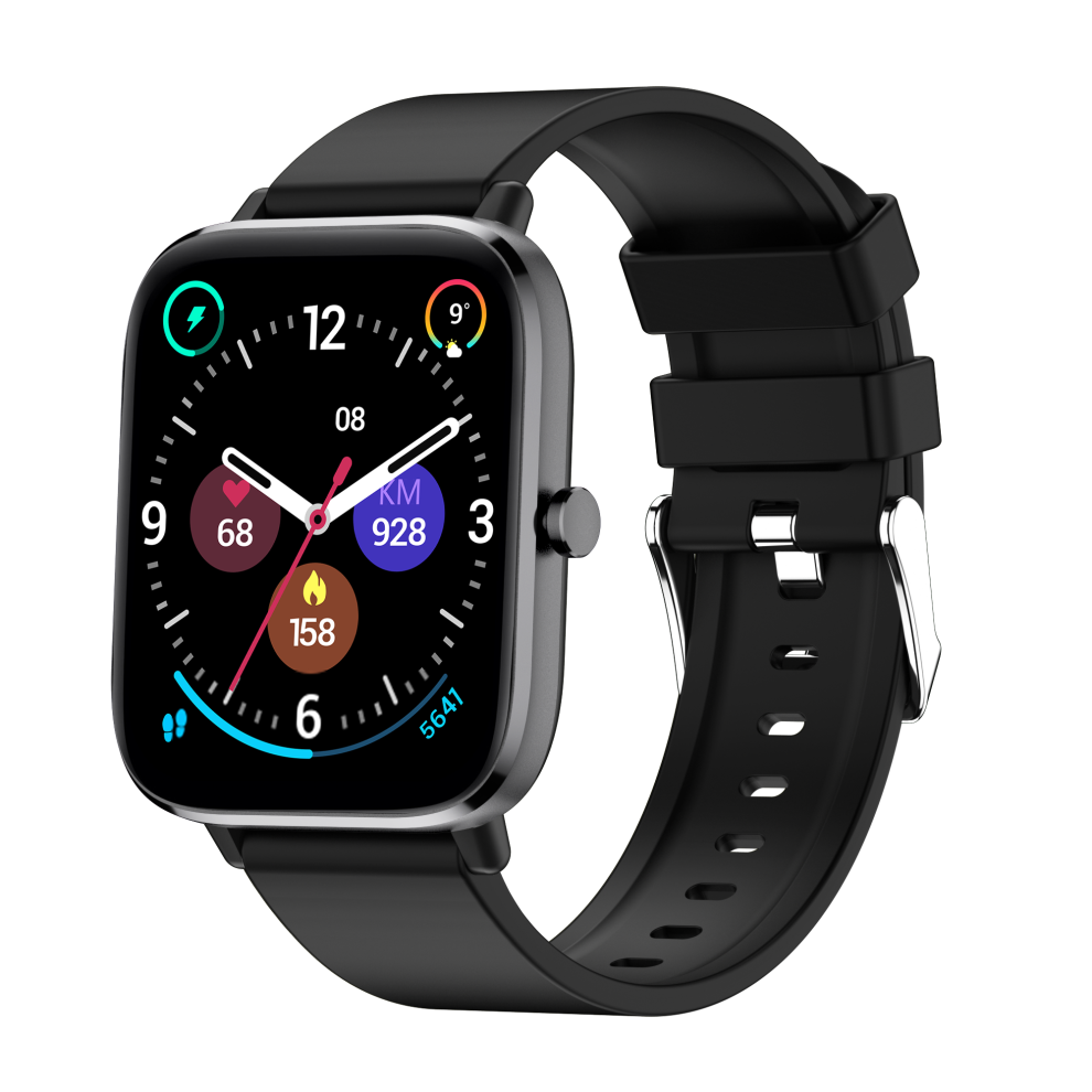 (Black) 1.69 inch Touch Screen Heart Rate Blood Pressure Oxygen Monitor BT 5.0 IP68 Waterproof Smart Watch