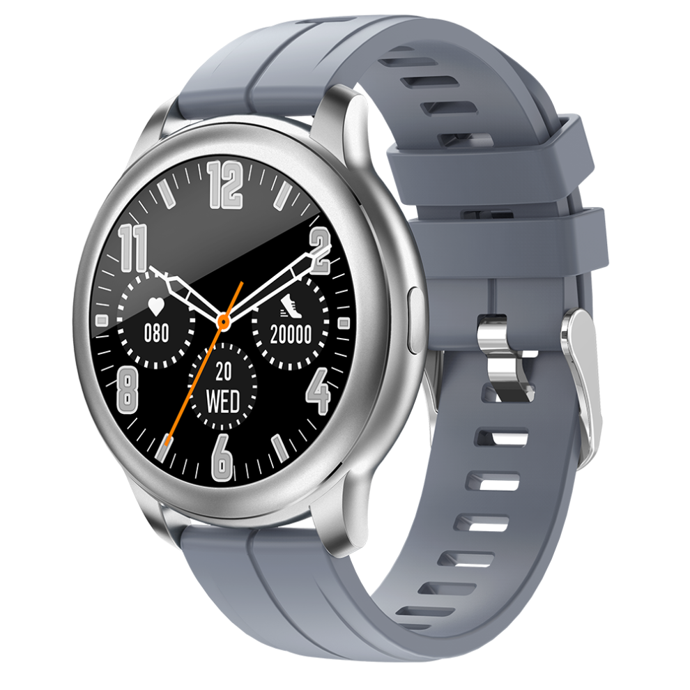 (Silver) 1.28 inch Full Touch Screen BT Call Heart Rate Blood Pressure Oxygen Monitor 24 Sports Modes 200mAh IP67 Waterproof BT5.0 Smart Watch