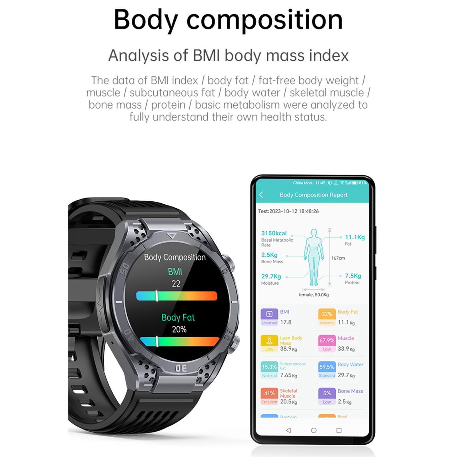 GreenZech (Black-Silicone) 1.28 inch Full-Touch Screen ECG+PPG Heart Rate Blood Pressure Oxygen Respiratory Monitor BT Call IP67 Waterproof 250mAh Smart Wa