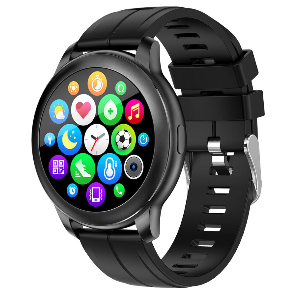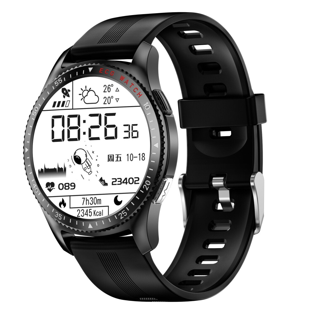 (Black-Silicone) 1.28 inch Full-Touch Screen ECG+PPG Heart Rate Blood Pressure Oxygen Respiratory Rate Monitor BT Call IP67 Waterproof 250mAh Smart Wa