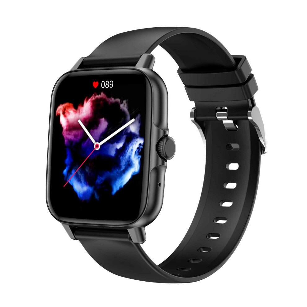 (Black-Silicone) 1.69 inch Full Touch Screen NFC BT Calling Heart Rate Blood Pressure Oxygen Monitor Multi-sport Modes IP67 Waterproof Smart Watch