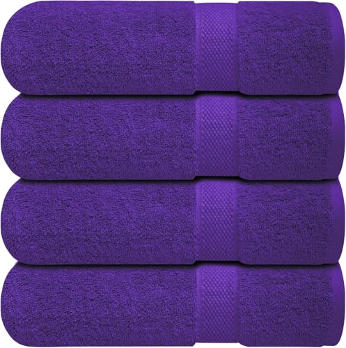 Infinitee Xclusives Bath Towels Set of 4 (70x140 cm) - 100% Cotton, Super Absorbent, Quick-Dry Towels for Bathroom, Spa, Gym & Hotel |Profound Purple|
