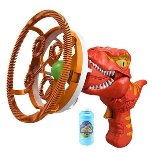 Dinosaur Bubble Gun Blower Toy, Dinosaur Bubble Machine for Making Oversized Bubbles, Automatic Bubble Gun with 250ml Bubble Liquid, Electric Bubble Gun Bubble Machine for kids (Red)