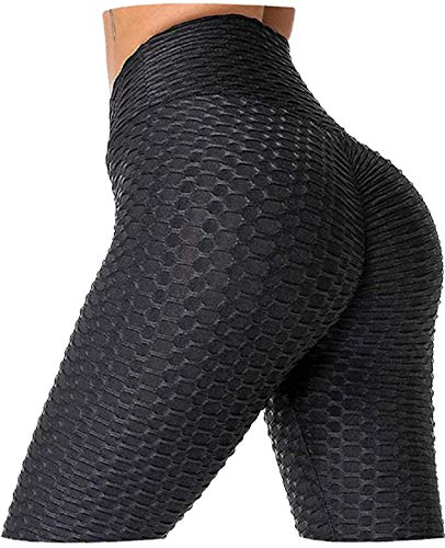 H&F Women Honeycomb Anti Cellulite Waffle Leggings, High Waist Yoga Pants Bubble Textured, Scrunch/Ruched Butt Lift Running Tights (S-M, Black)