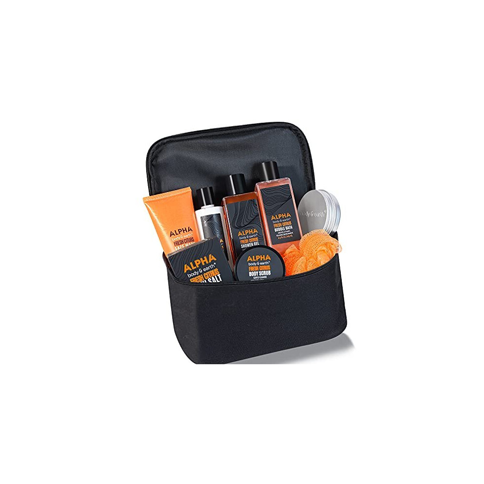Gift Sets for Men, 9Pcs Spa Gifts for Him with Fresh Citrus - Bubble Bath, Face Wash, Shower Gel, Bath Salts & More, Valentines Bath Gifts for Me