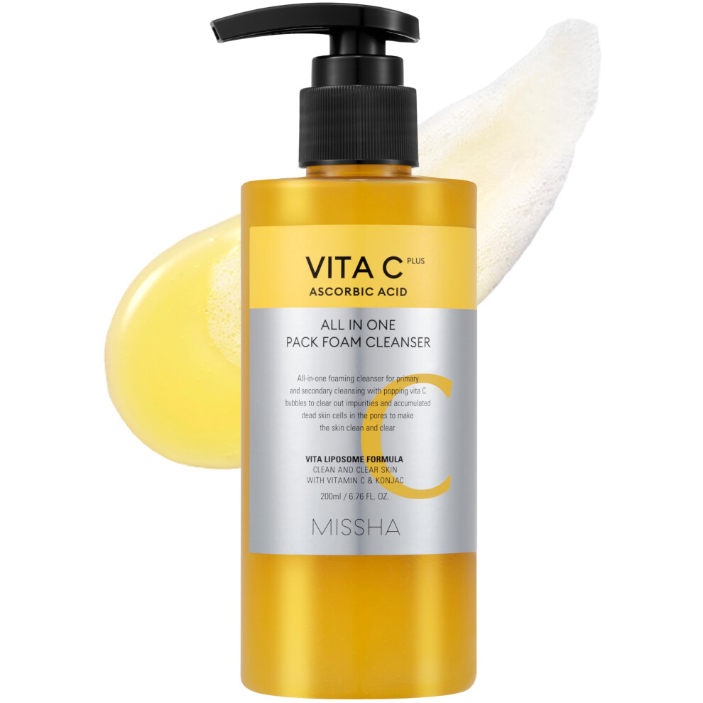 MISSHA Vita C All-In-One Bubble Foam Facial Cleanser 6.76 Fl oz / 200ml- Deep Pore Detox, Magic Bubbles with 99% Pure Vitamin C, Korean Face Wash - Re