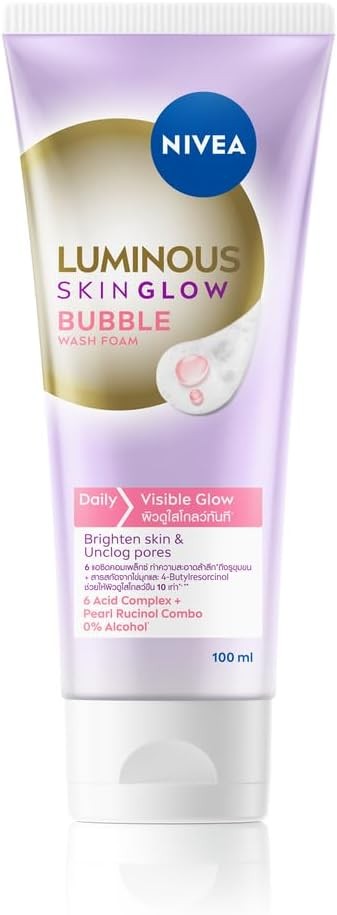 NIVEA Luminous Skin Glow Bubble Foam Face Wash, 100ml, 6 Acid Complex with Pear