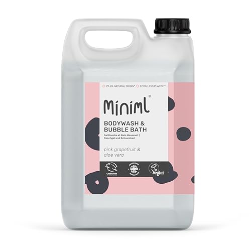 Miniml All Natural Body Wash and Bubble Bath - 5L Refill Moisturising Pink Grapefruit and Aloe Vera Sensitive Skin Eco Shower Gel Bath Soak - Vegan Friendly Hand, Face & Body High Foam Scrub