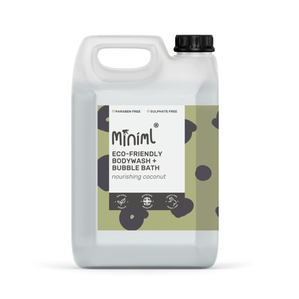 Miniml All Natural Body Wash and Bubble Bath - 5L Refill Moisturising Nourishing Coconut Vera Sensitive Skin Eco Shower Gel Bath Soak - Vegan Friendly Hand, Face & Body High Foam Scrub