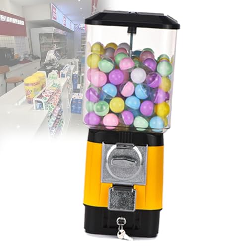 Coin Operated Bubble Gum Machine, Candy Vending Machines, Coin Operated Gumball Bank for Toy Capsules Bouncy Balls Candy Yellow