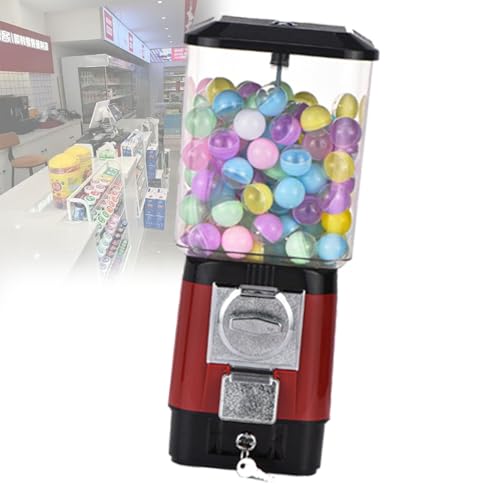 Coin Operated Bubble Gum Machine, Candy Vending Machines, Coin Operated Gumball Bank for Toy Capsules Bouncy Balls Candy Red