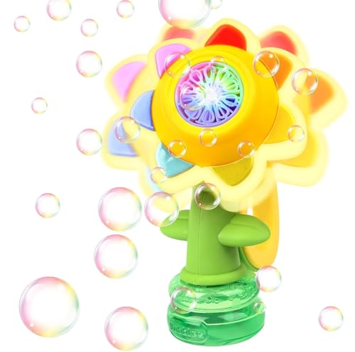 Vibbang Sunflower Bubble Machine, Automatic Dancing Flower Bubble Maker, Rechargeable Bath Bubble Toy, with 7 Color Lights, Bubble Solution Toy Gift for Party Outdoor Indoor