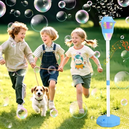 Standing Bubble Machine for Kids, Rechargeable Bubble Machine with Lights & Music, Adjustable Height up to 47 Inch, Automatic Electric Bubble Machine for Outdoor Wedding Birthday Party