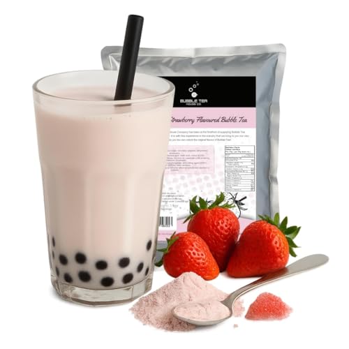 Strawberry Bubble Tea Powder 1 kg – 3 in 1 Drink Mix – Gluten Free, Lactose Free, Vegetarian – Makes 33 Servings – Easy to Prepare Hot or Cold for Café-Style Boba Tea
