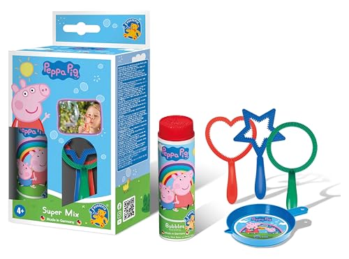 PUSTEFIX Peppa Pig Super Mix, 70ml Bubble Solution, 3 Wands, Colourful Bubbles, Made in Germany, Soap Bubbles Toy for Children's Birthdays, Weddings, Parties for Children