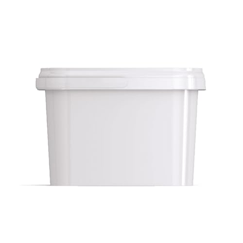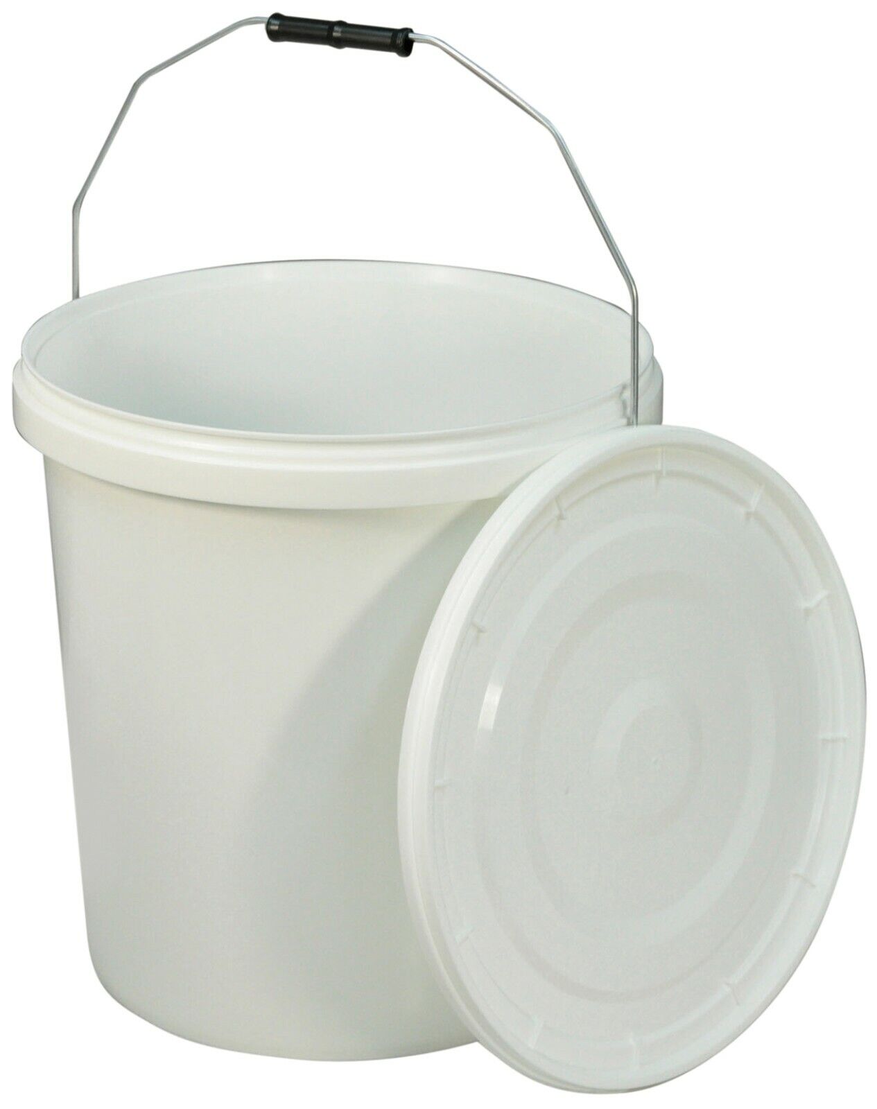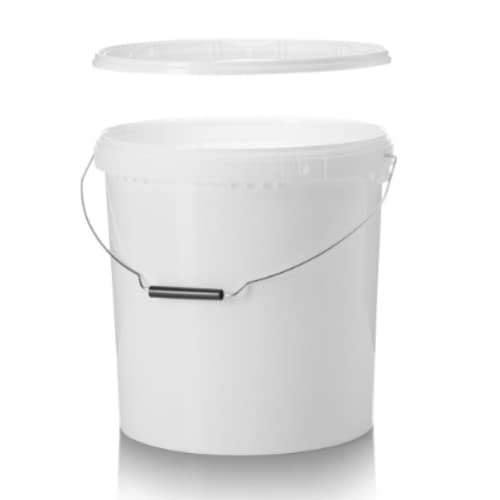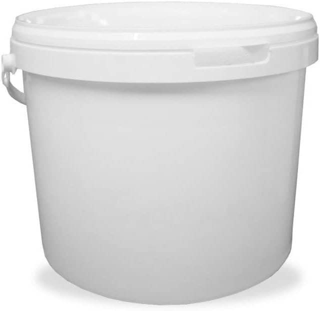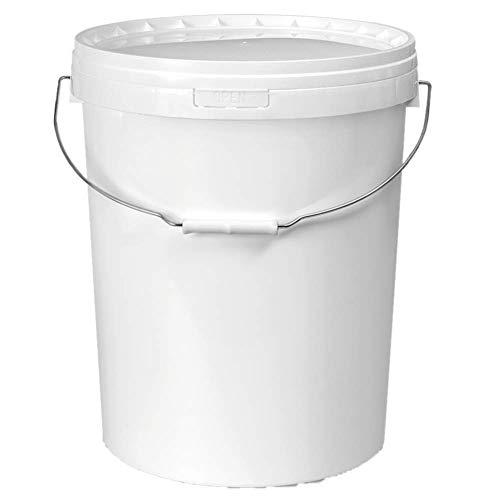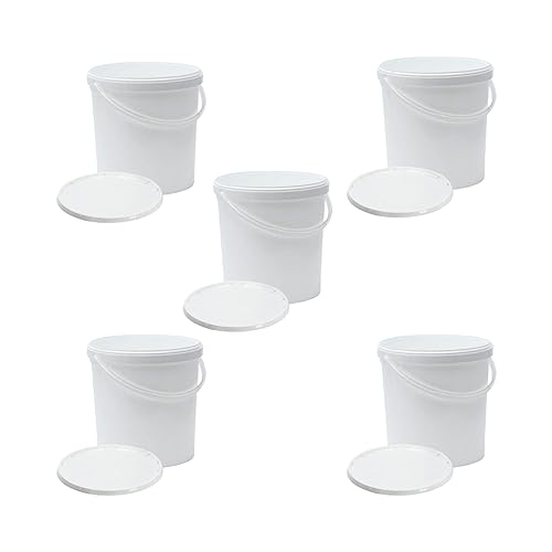 Pack of 5 x 20 Litre Food Grade Plastic Bucket with Lid and Plastic Handle, White, Airtight, Recyclable & BPA Free