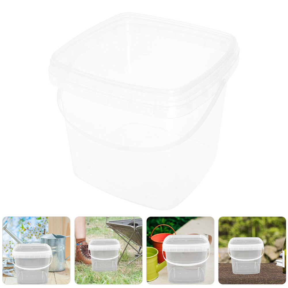 Plastic Paint Can 2L Square Food Bucket with Lid and Handle Clear Food Storage