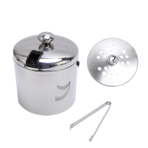 Acouto Stainless Steel Double Wall Ice Bucket, Insulated with Lid, Strainer, Tongs, 2L Capacity, for Parties, BBQ, Outdoor
