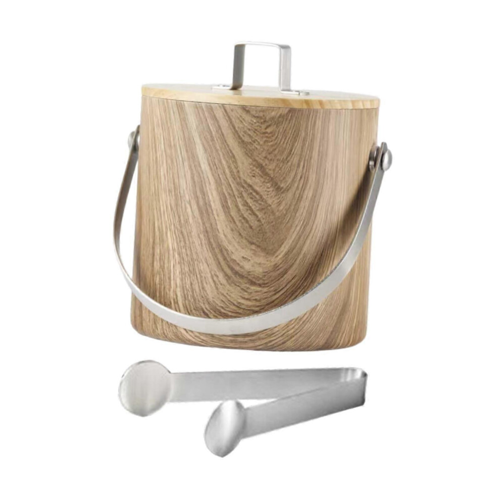(3 L Wood Grain, One size) Ice Bucket with Lid and Tong Champagne Bucket for BBQ Home Family Gatherings 1.4 L Wood Grain