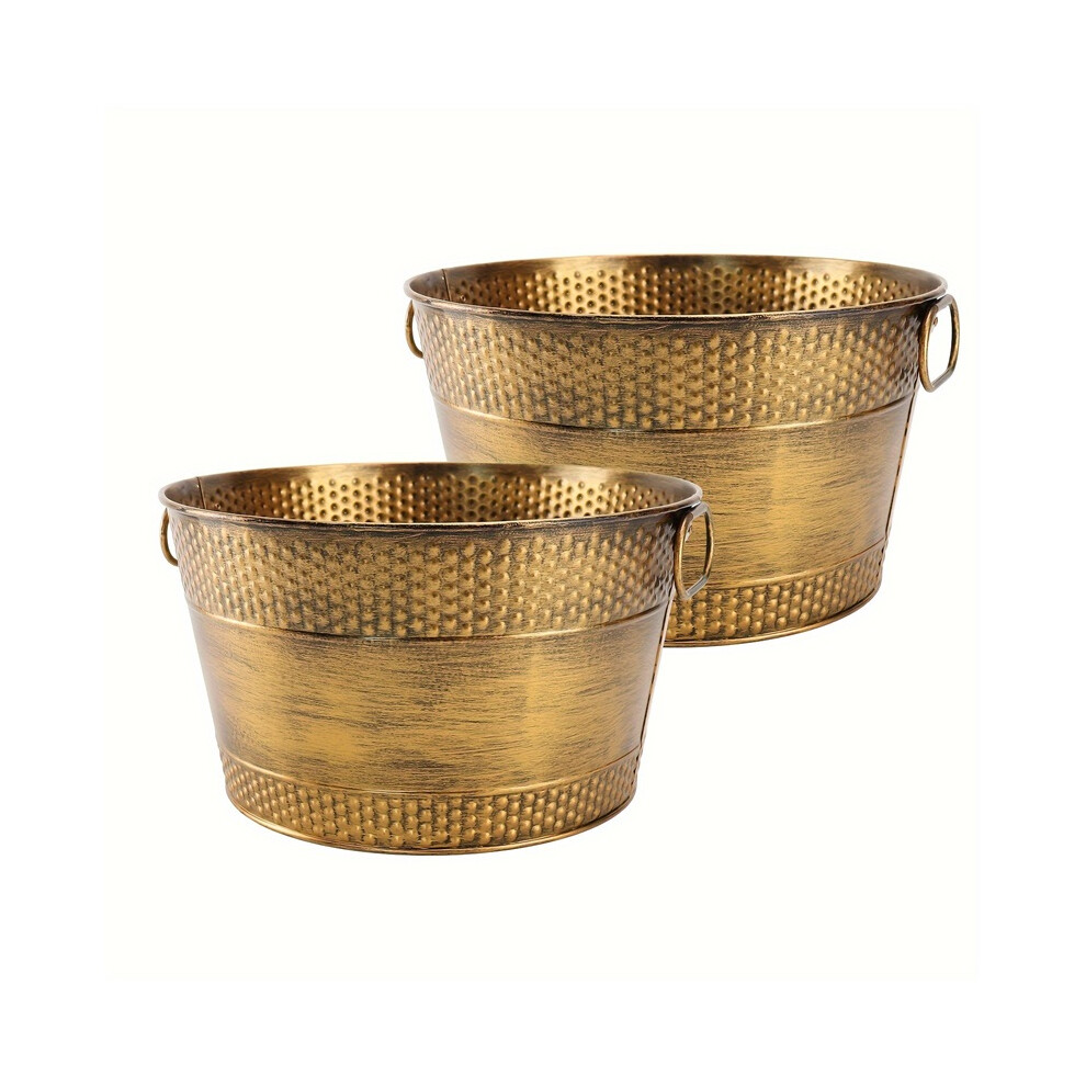 (Hx-002-y, 2pcs) Multicolor Portable Iron Ice Bucket, Outdoor Storage Bucket, BBQ Ice Bucket,Leakproof and Rustproof, with Handle