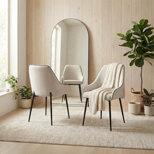 Furniturebox UK Beaumont Dining Chairs – Set of 2 Cream Fabric Upholstered with Black Metal Legs – Modern Bucket Style Dining Room Chairs – Contemporary Upholstered Seating