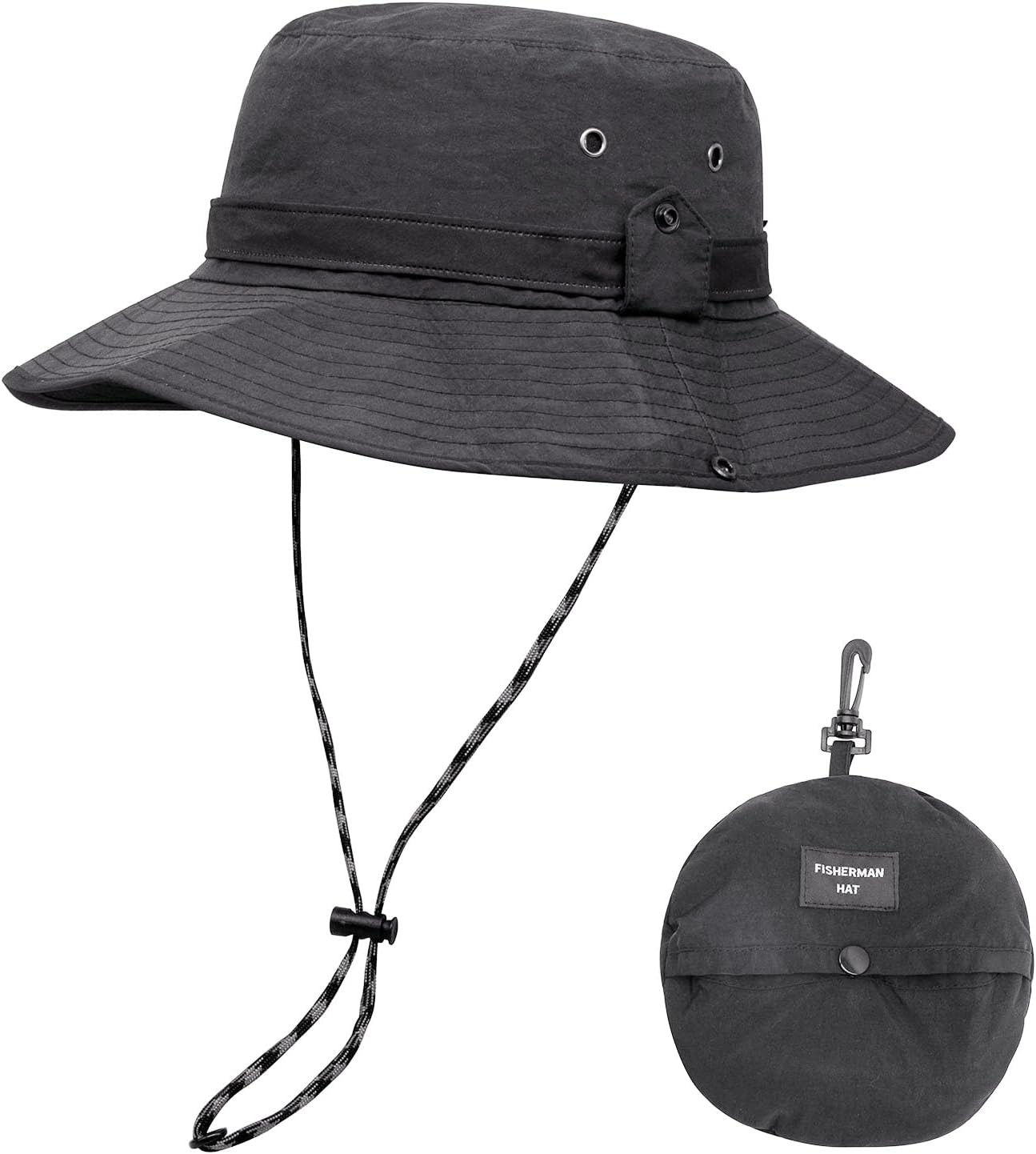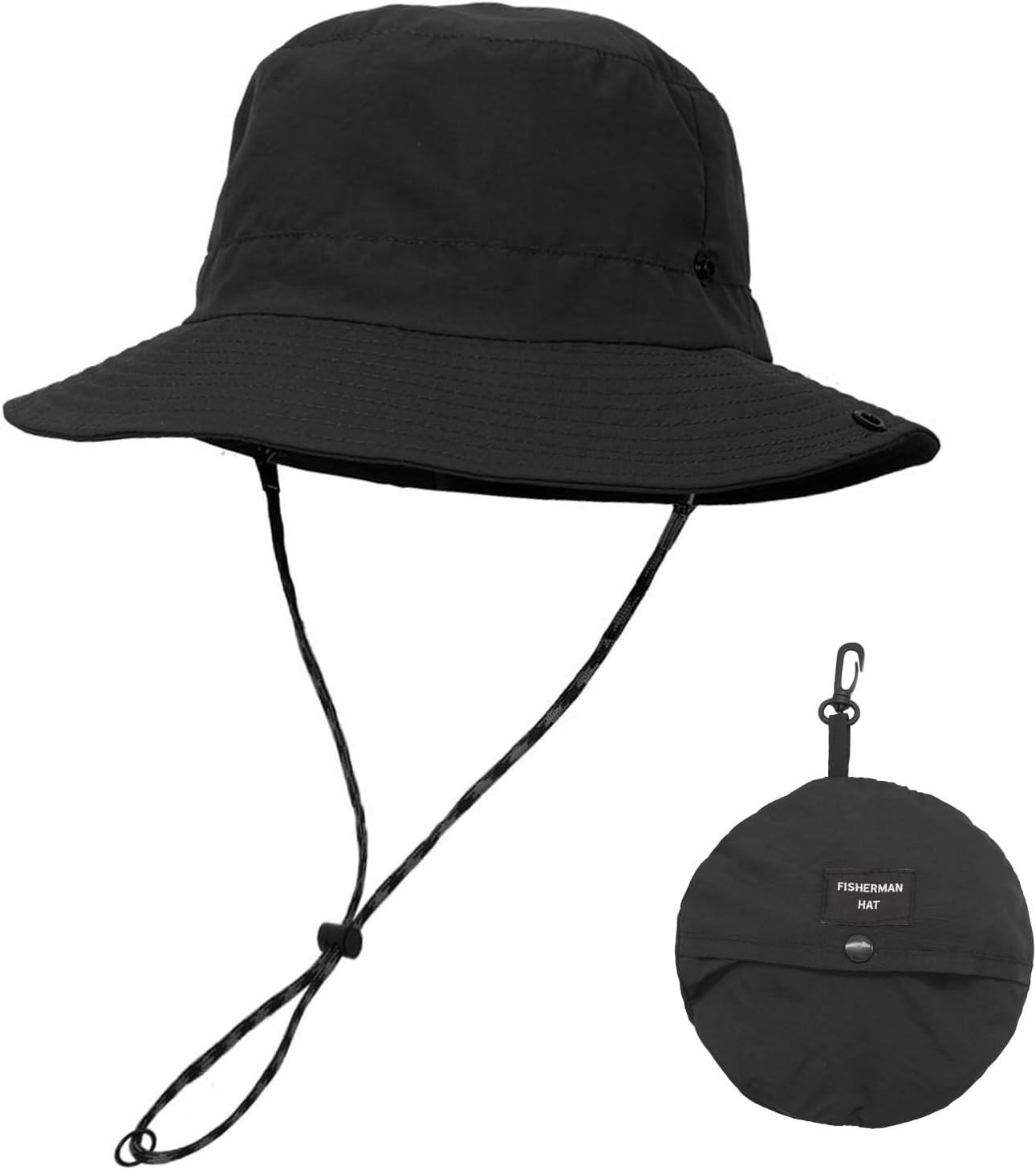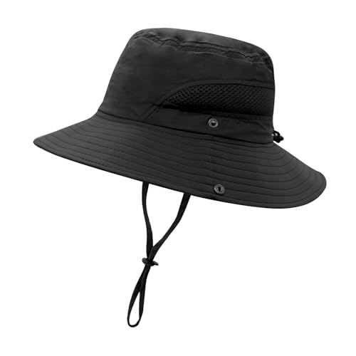 YAMEIZE Summer UPF50+ Bucket Hat Waterproof - with String for Women Men UV Protection Adjustable Strap Safari Hat Fishing Hat Hiking Climbing Black