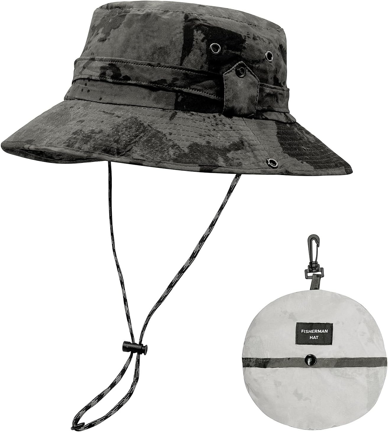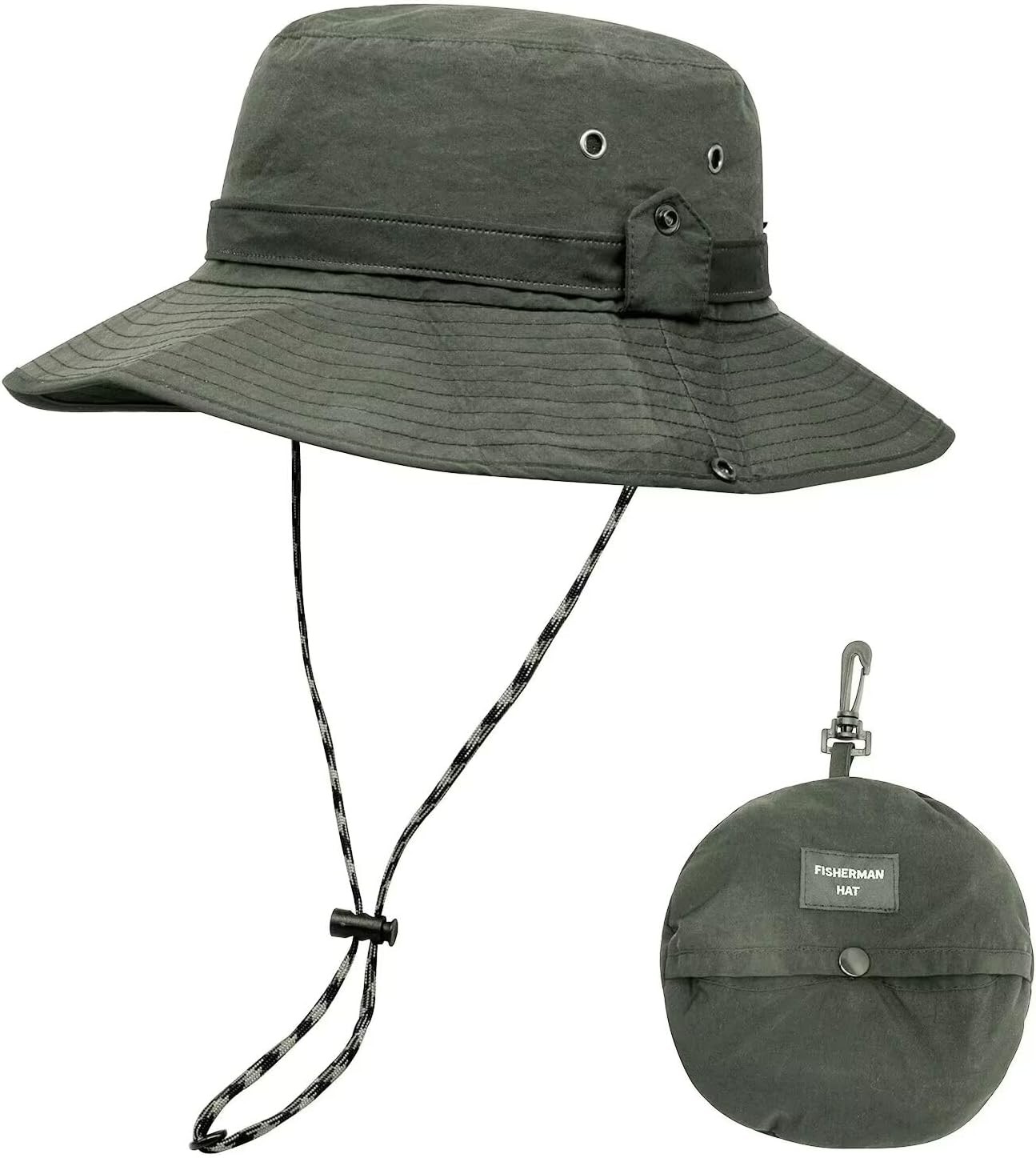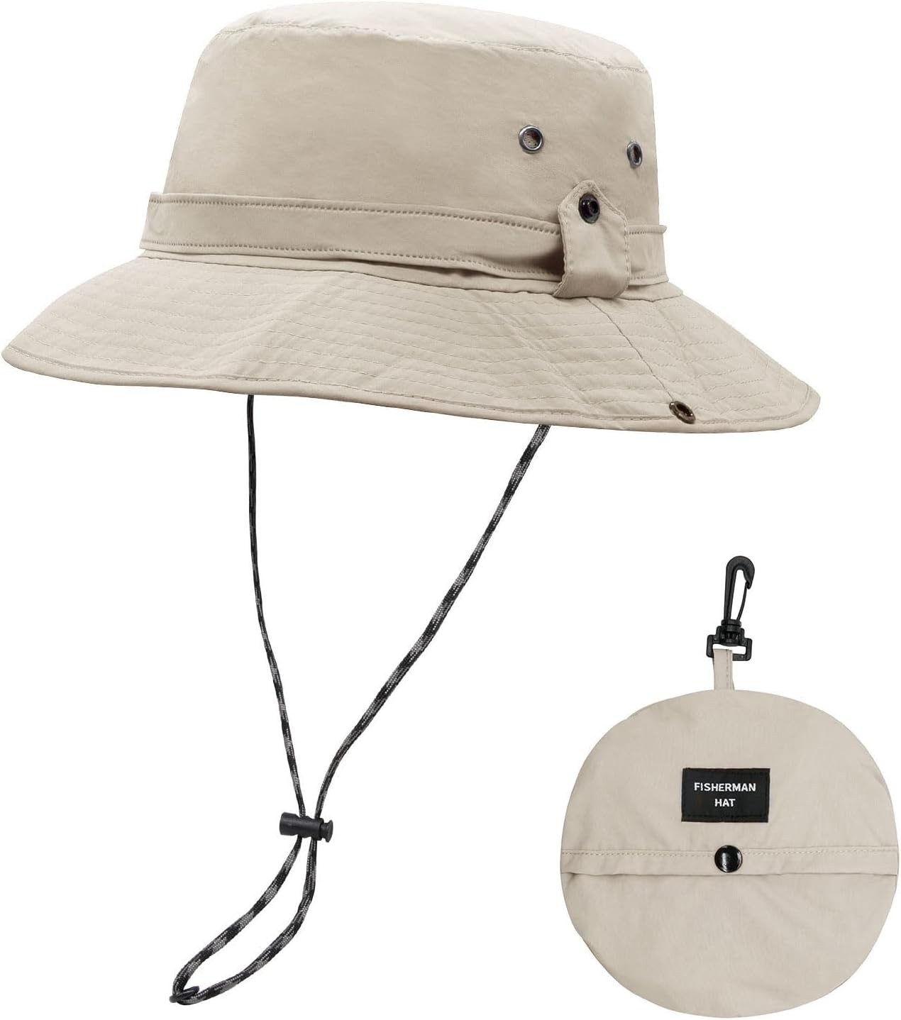 Radsocken Safari Hat, Waterproof Hat for Men Women, Khaki Portable Adjustable Bucket Hat UPF 50+, Fishing Hat Boonie Hat with Adjustable String for Hiking Camping Climbing Fishing Riding Holiday