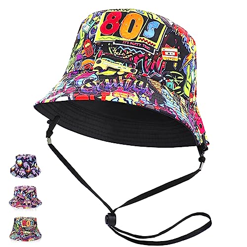 GLGHMH Unisex Reversible Bucket Hat with String, Double-Side Cotton Trendy Summer Fisherman Hat, Travel Sun Fisherman Bucket Hats for Women Men (Graffiti)